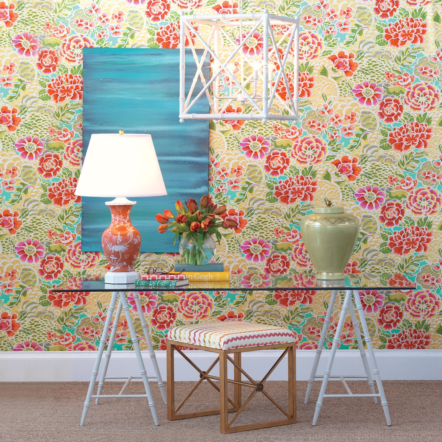 Gold deco inspired pattern featured on our porcelain jar.