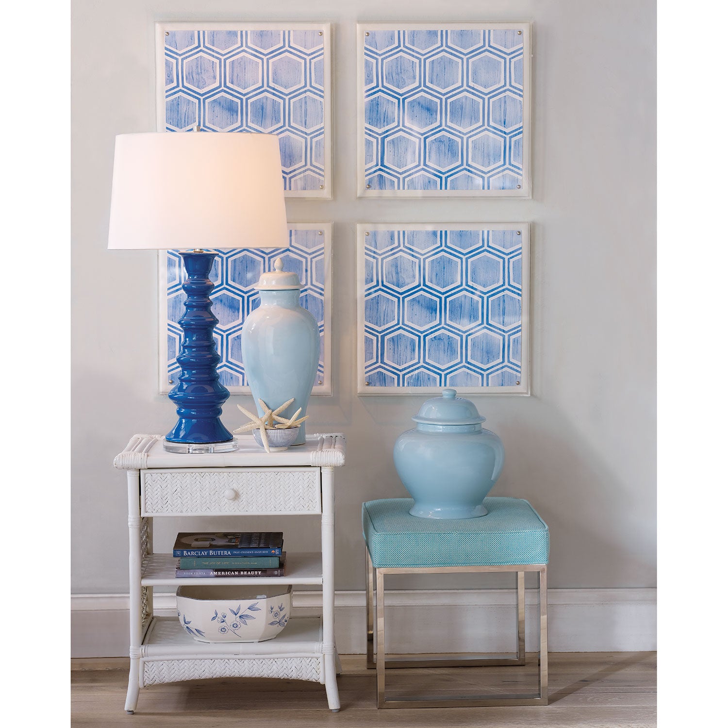 Odeon is our modern interpretation of the classic tall temple jar. Featuring a translucent blue glaze, the jar is scaled to rest in our Drake shelves or on our Glencoe lucite shelf.