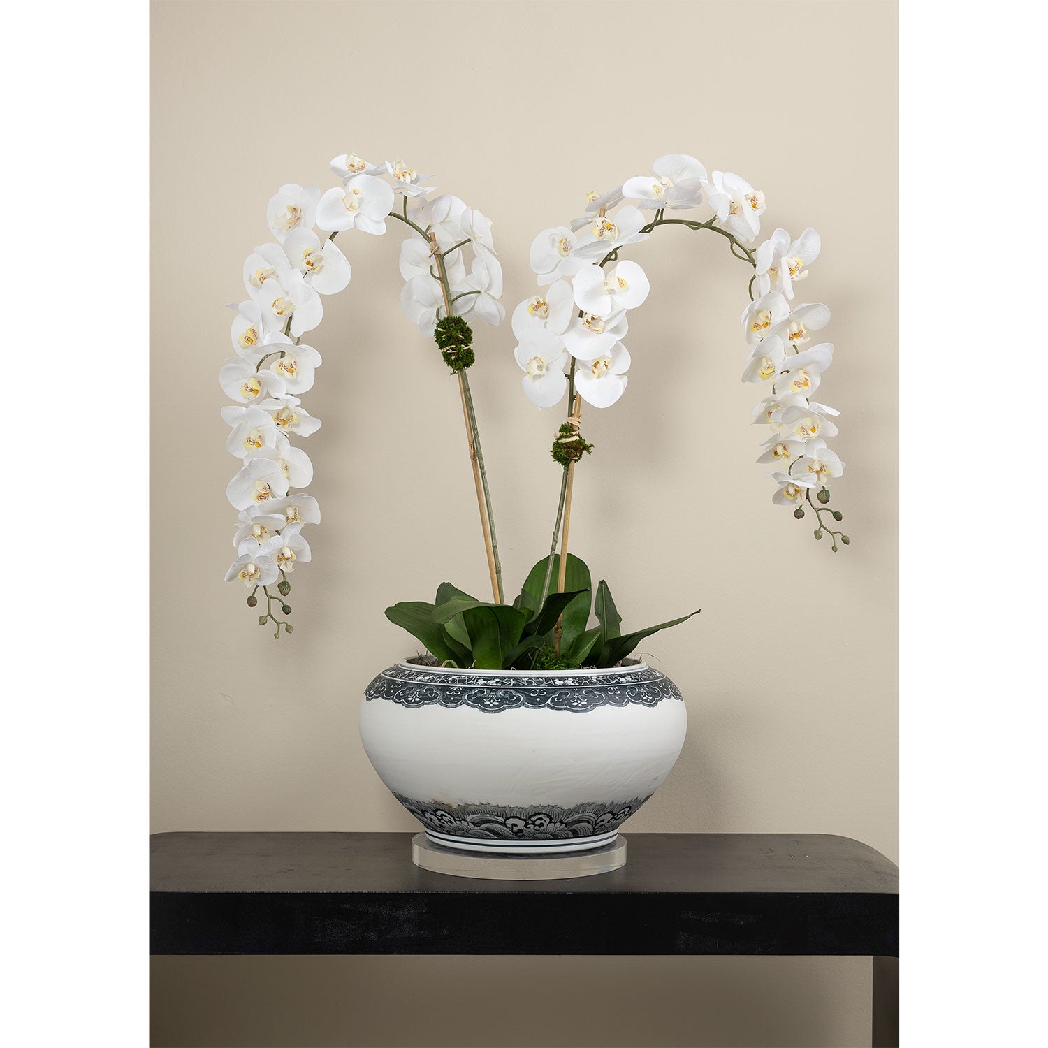 Ming is our modern Asian inspired ginger jar which features a indigo blue matte glazed porcelain finish. The color of the pattern is a dark indigo blue, that almost appears black to the eye, but the pattern is indigo. Jar has a lift off lid / top.