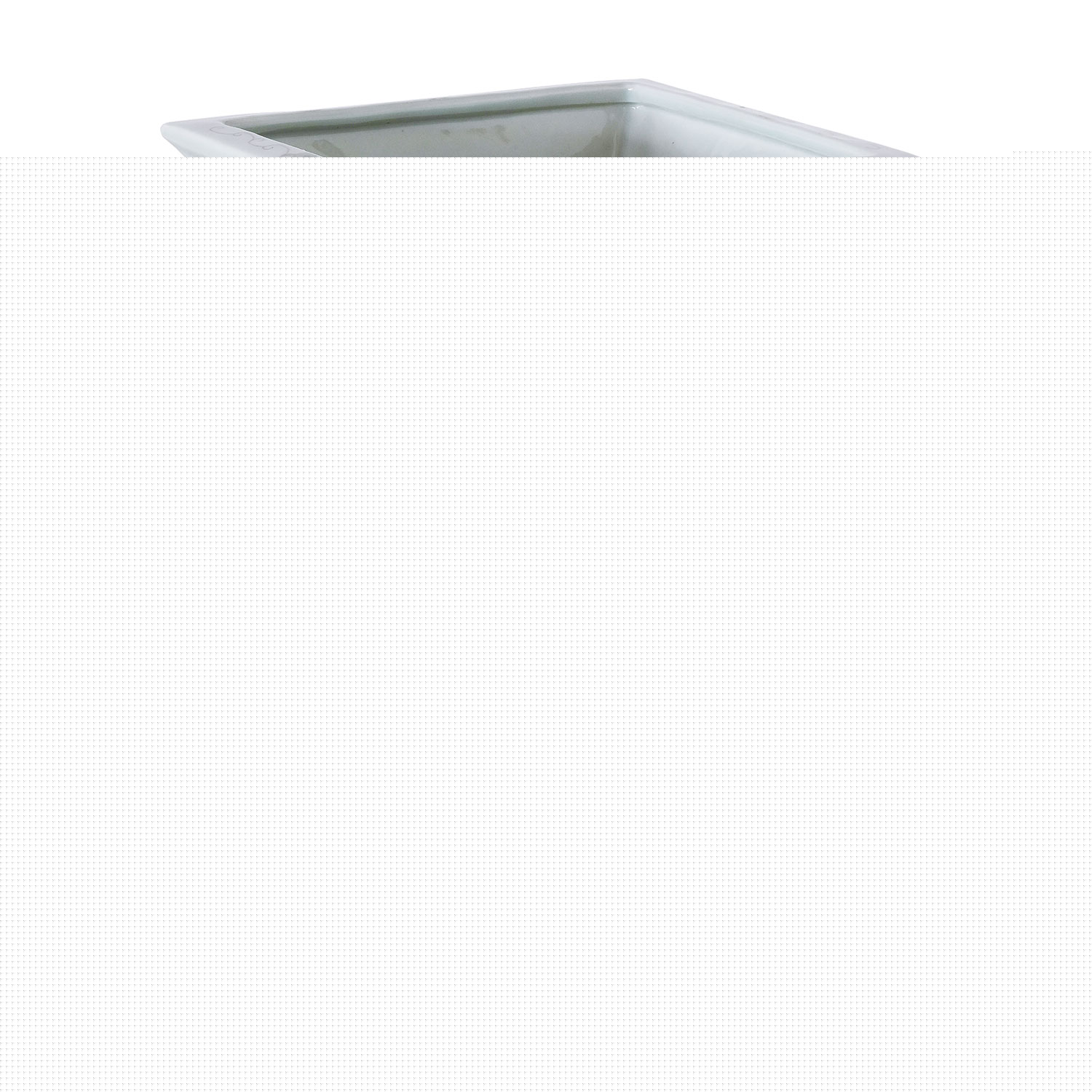 Protective foo dogs are depicted on the square shaped planter. The subtle brown and white porcelain planter includes a black wooden stand. The planter is scaled for instant decorating with a single topiary or seasonal blooming plant. We like to use them on the mantle in pairs or on hallway plant stands. The planters make a classic welcome accessory to the room.