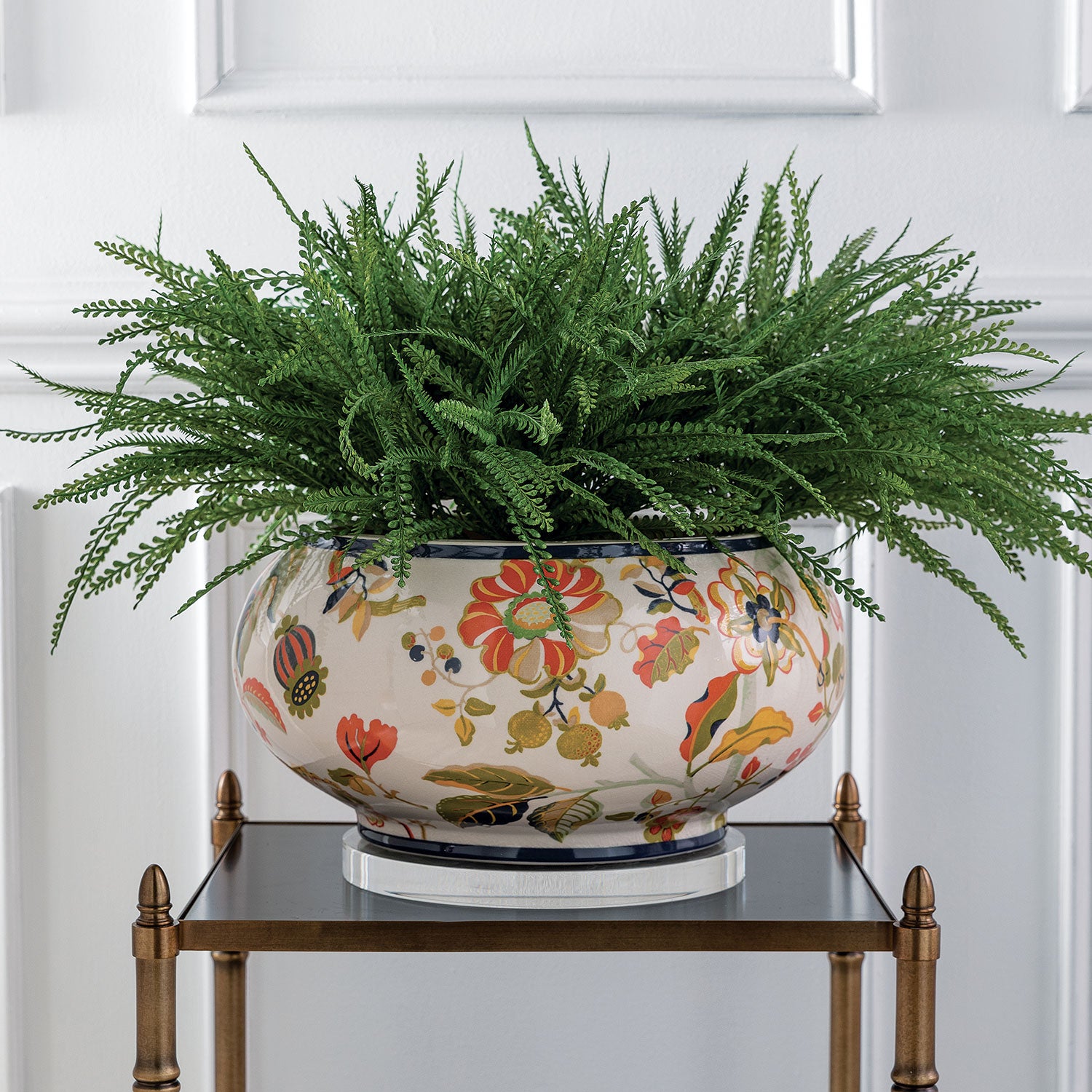 The center basin/planter is scaled for live plants, fresh florals or decorative balls.