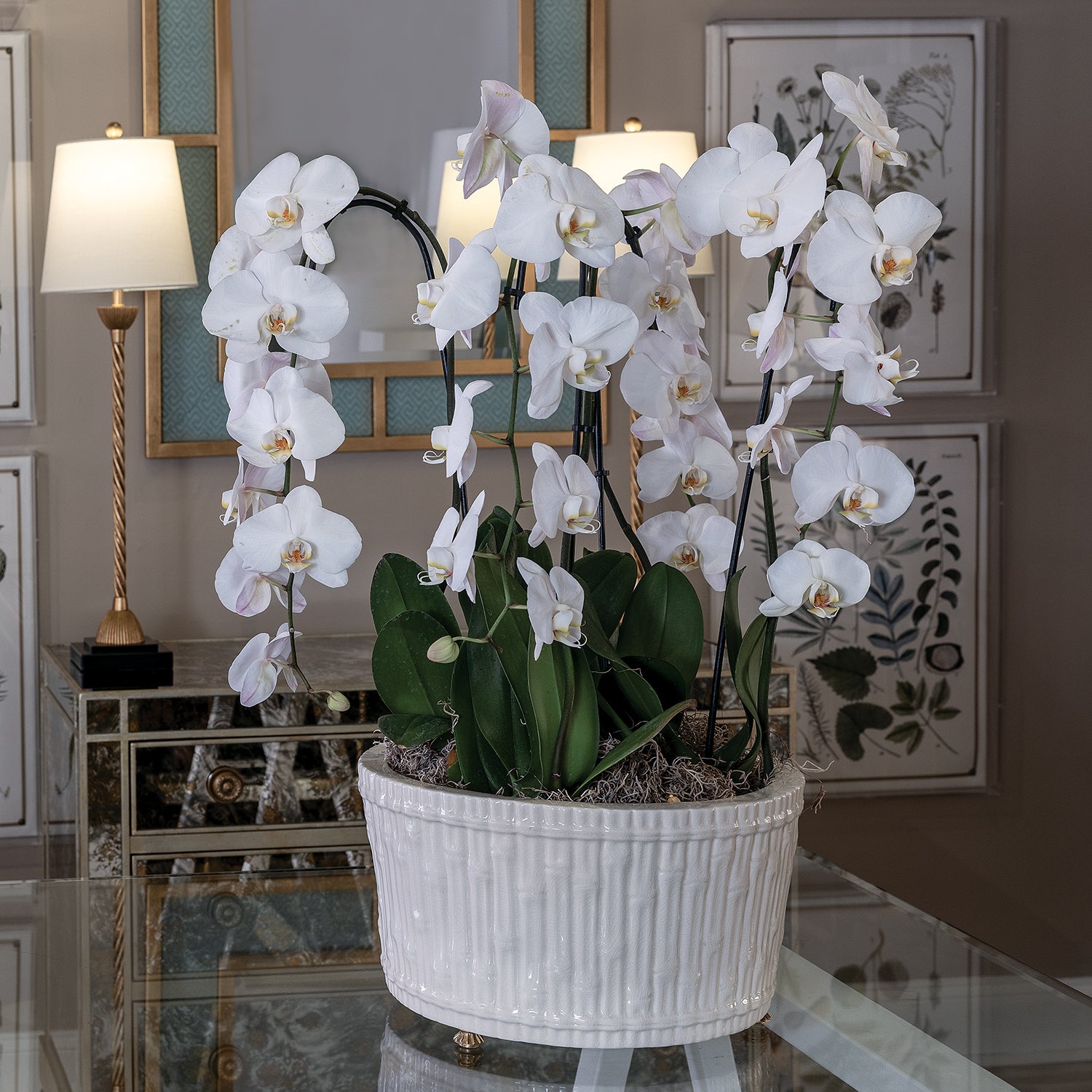 Grand, casual and timelessly traditional would describe our round 15" diameter bamboo garden center basin. Perfect for the hall, dining or cocktail table when displaying orchids or a mass of florals. We also like to pile up fresh apples or oranges for a simple, yet elegant statement of color.