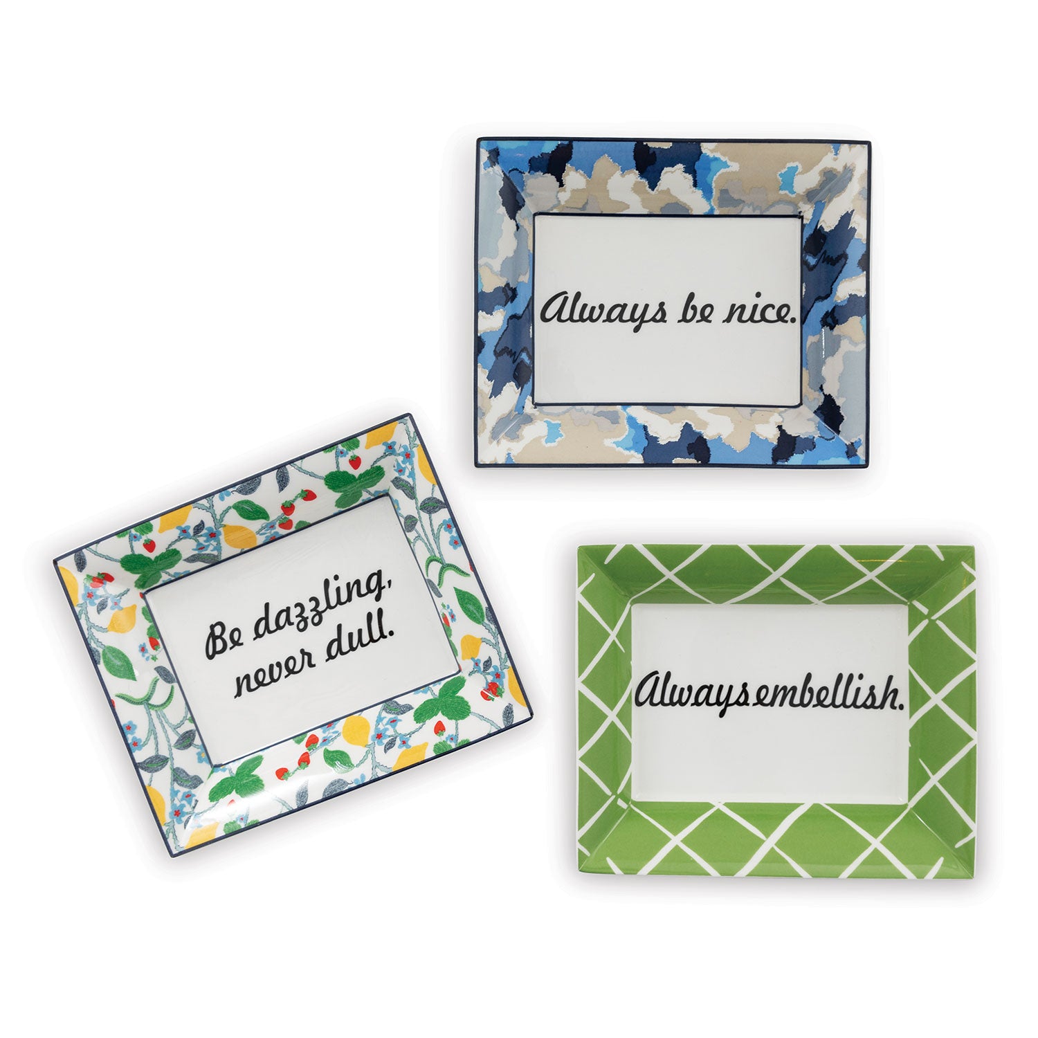 Price shown is for the set/3.The set is a mix of 1 plate each of: "Be Dazzling, Never Dull", "Always be Nice" and "Always Embellish"