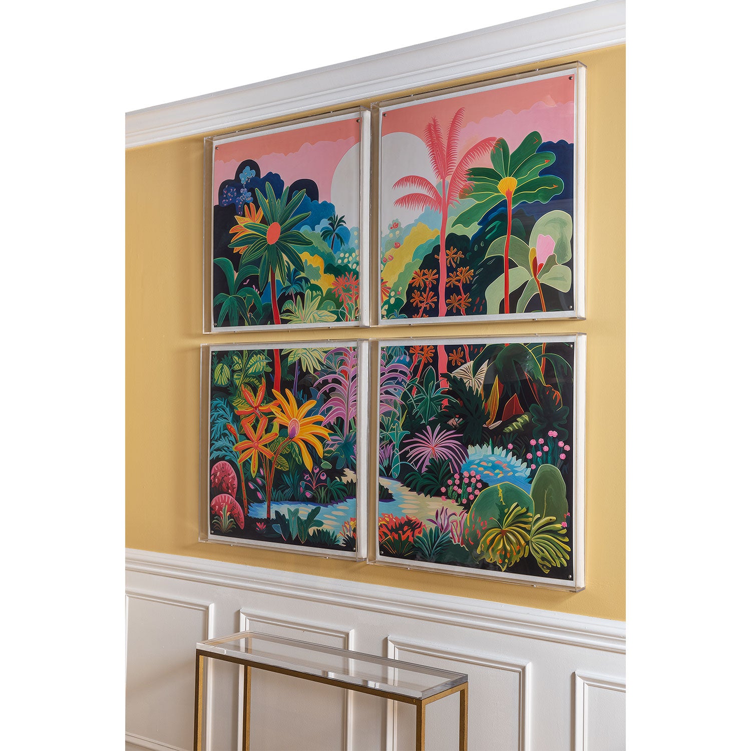 Paradise Dream is our colorful and dramatic scenic artwork that celebrates tropical paradise in a rainbow of color. Modern, fresh and ever so grand as the piece on the wall measures 60" x 60" if placed directly together.