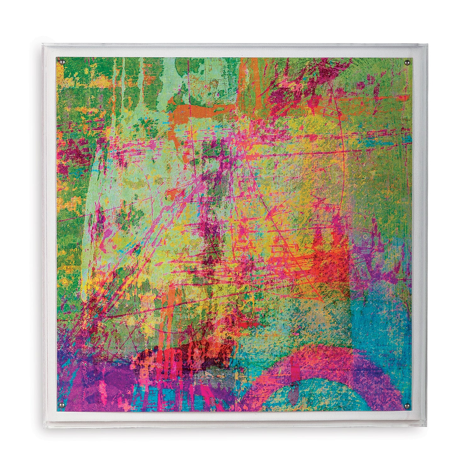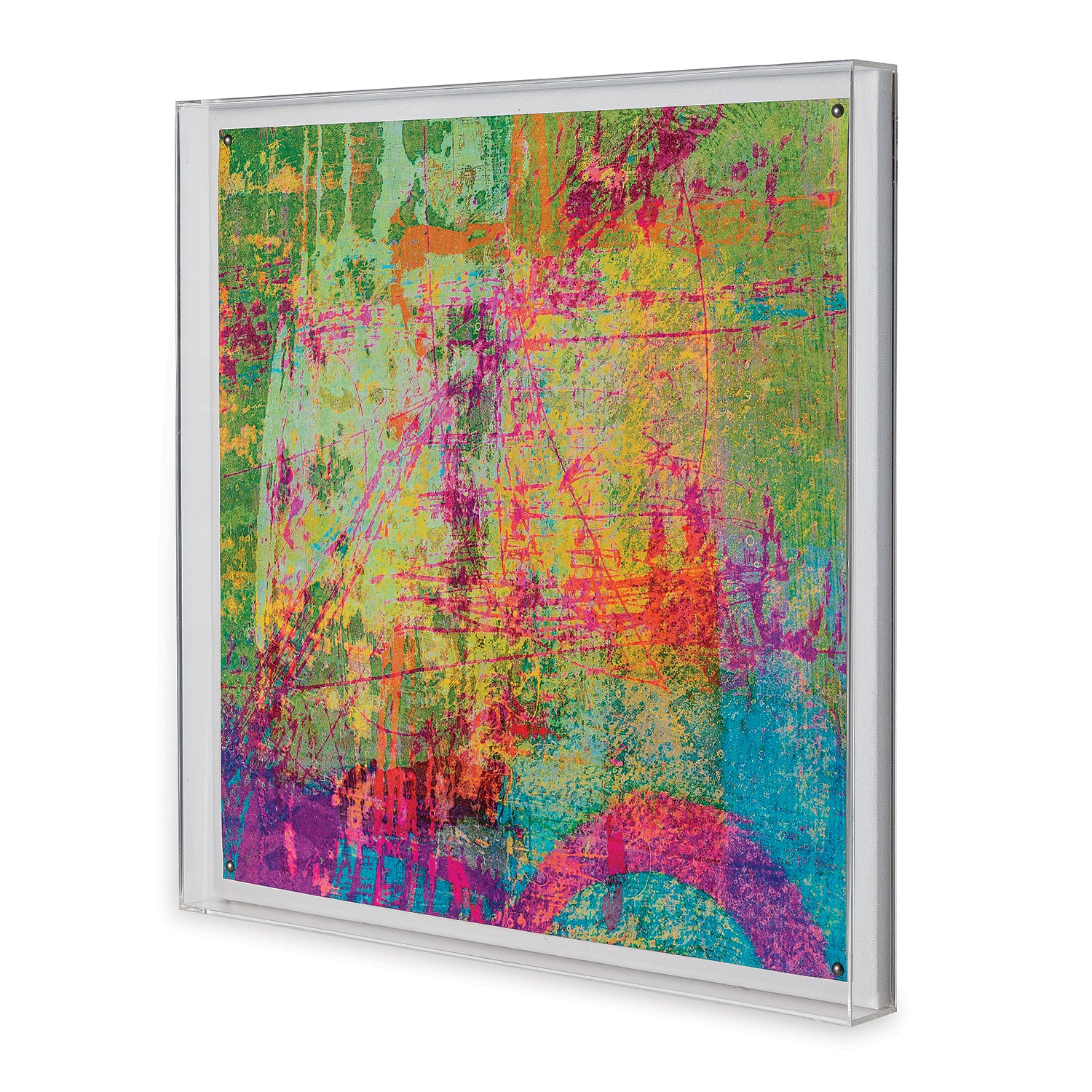 Mounted under a acrylic shadowbox frame, the image is pop of color for a contemporary or transitional home.