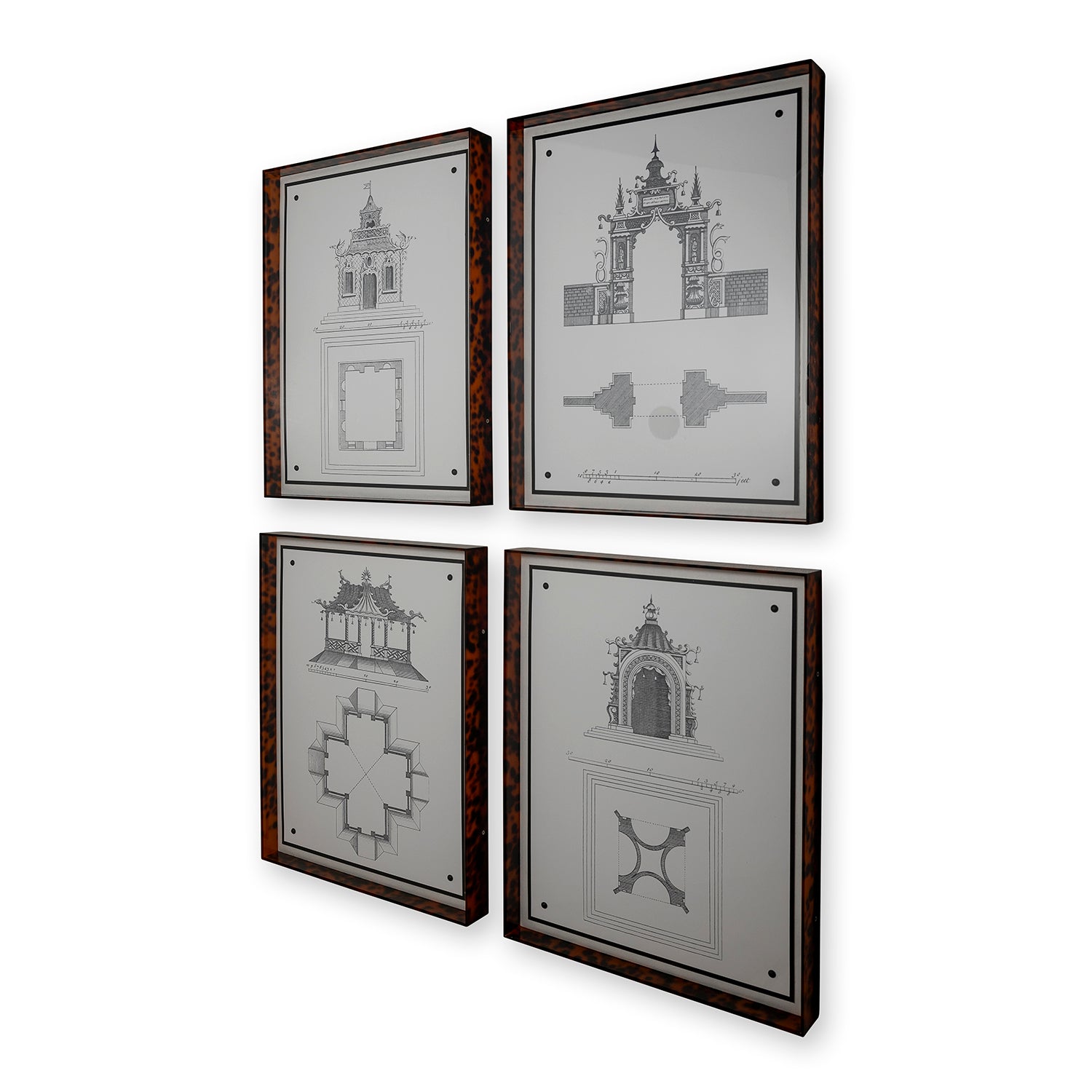 Pagoda Folly is our architectural series of four giclee prints that are studies of the decorative gazebo or ''building follies". The original prints reside in the museums at Colonial Williamsburg. Grand estates from centuries ago often had 'follies' purely as decorative buildings or ornamentation in the gardens.