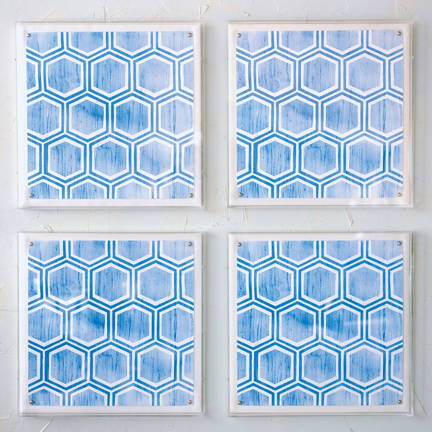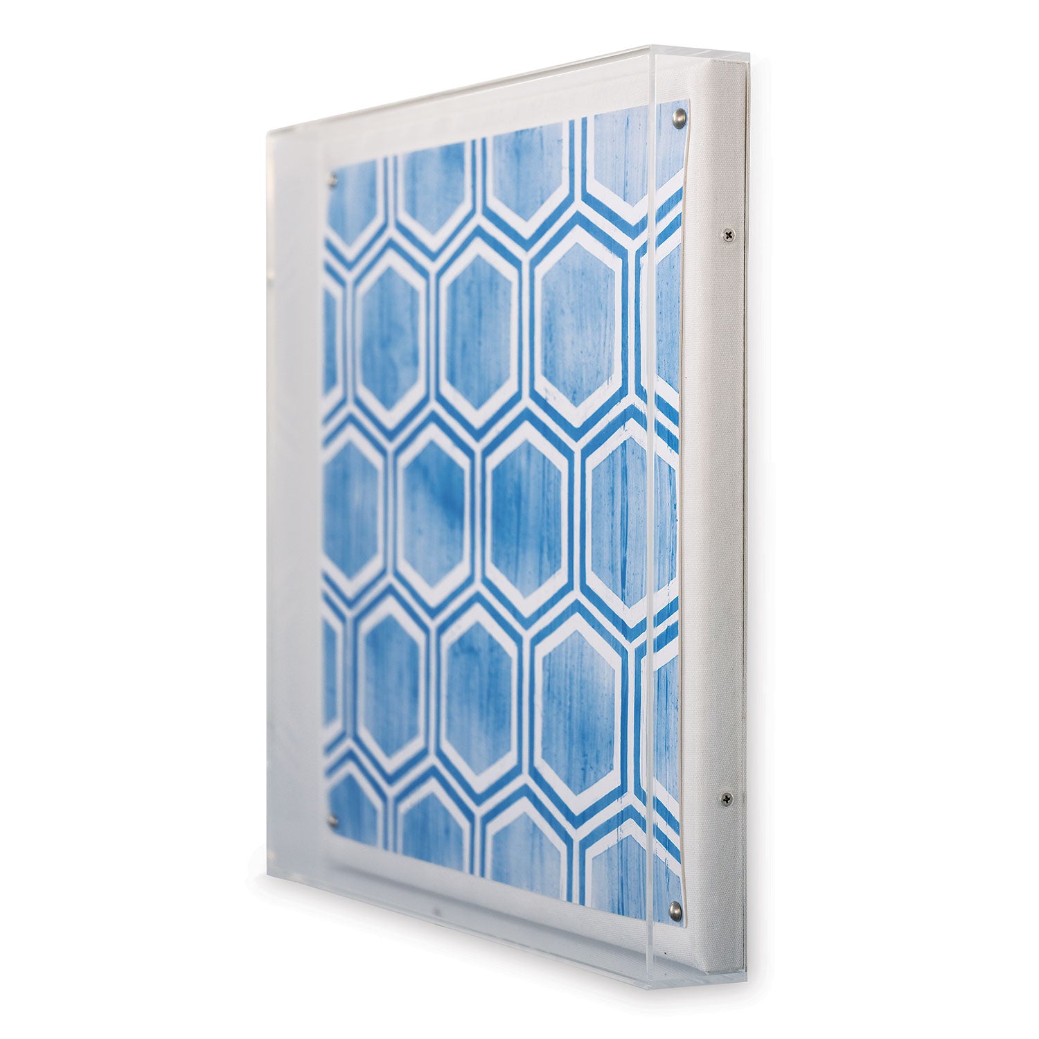 The "Blue Driftwood" artwork is a giclee print. You may choose to move the back d-ring mounts to flip to pattern of the artwork when displayed in multiples on the wall.