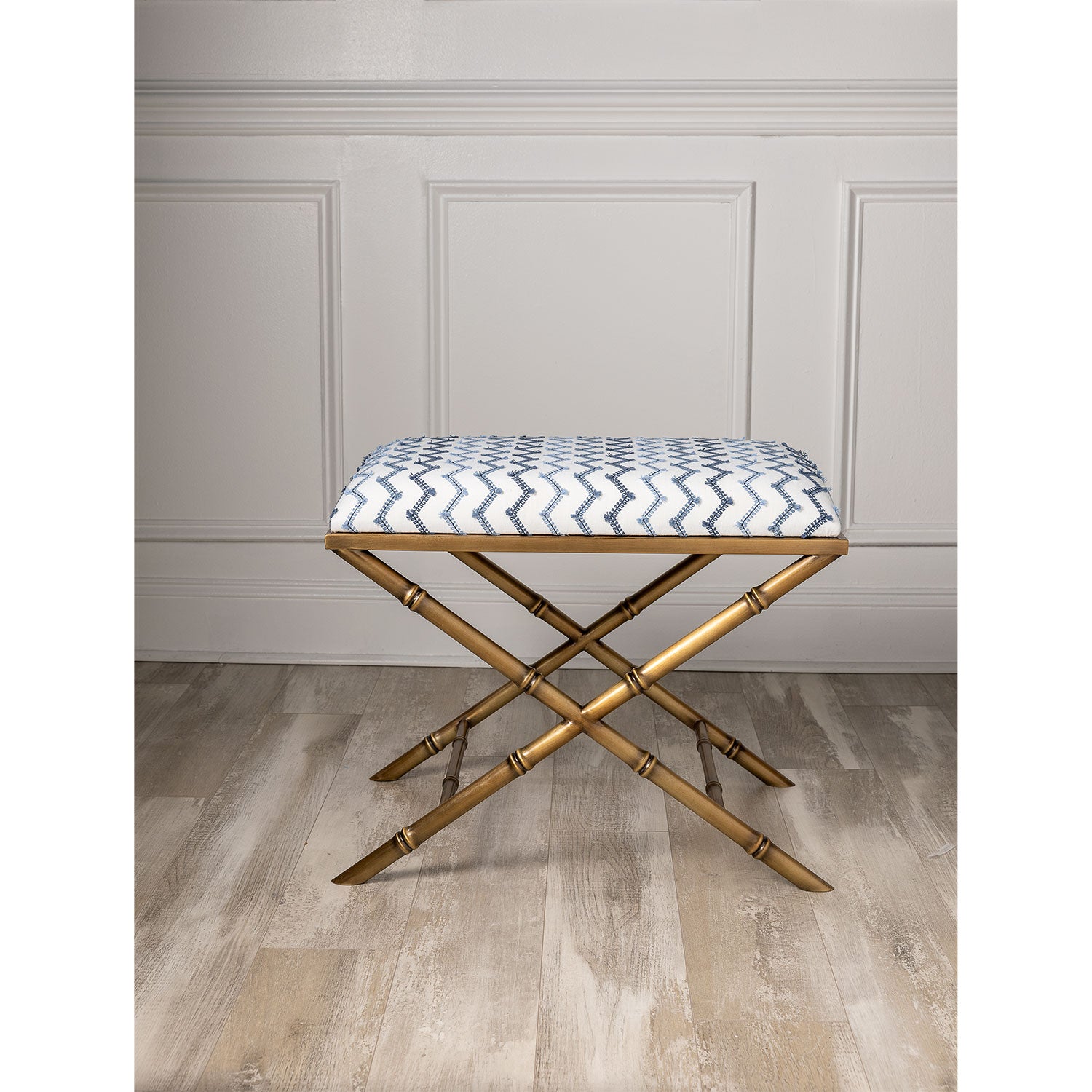 Classic detail of bamboo is featured on the Lauderdale upholstered bench. Cast steel metal frames are available in aged brass and polished nickel finishes. We offer a range of fabrics. COM is an option where you may send in your own choice of fabric to be upholstered.