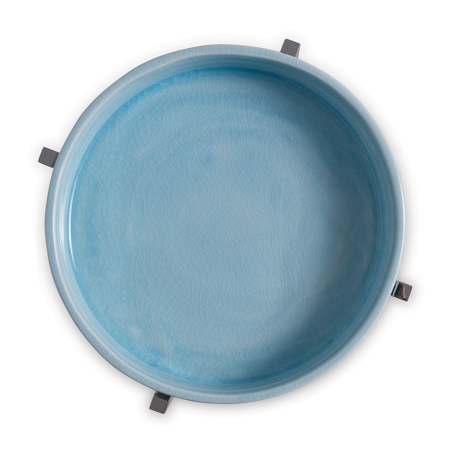 Jody is our bright and colorful cleaned lined accent table which features a porcelain tray top in a sky blue glaze. Accented with nickel polished solid steel base.