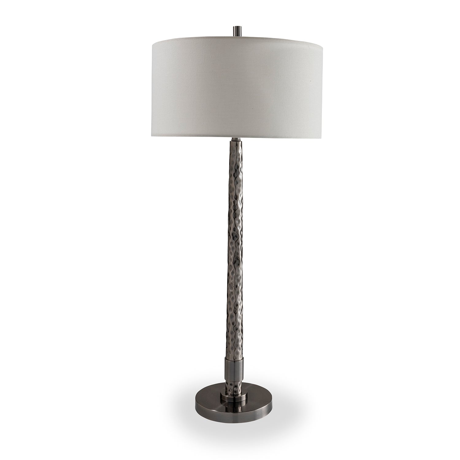 Florence features cast hammered texture in the metal body for a industrial, yet modern look. The lamp is perfect as a single light, or dramatic when the lamps are shown as a pair on the console.
